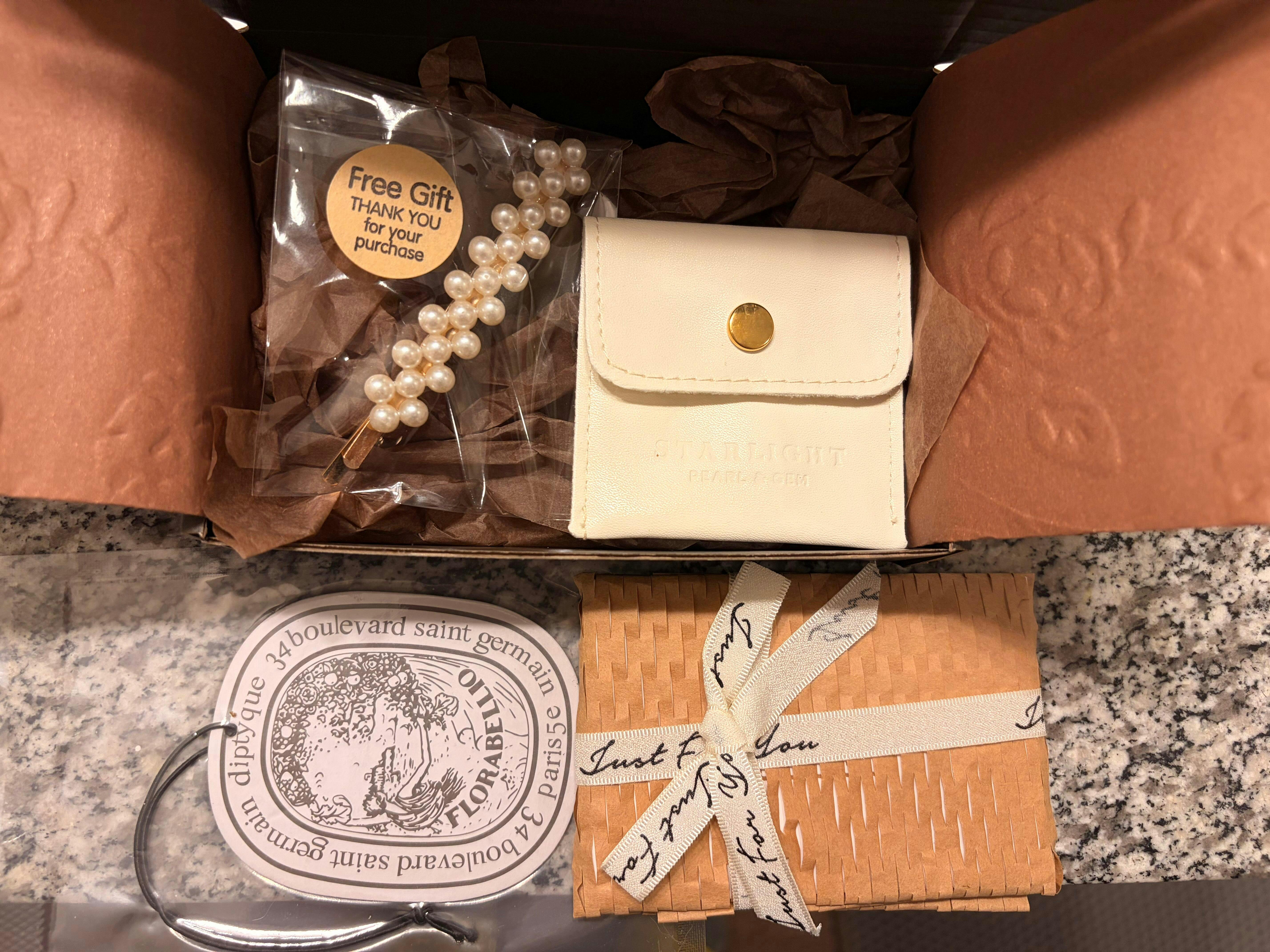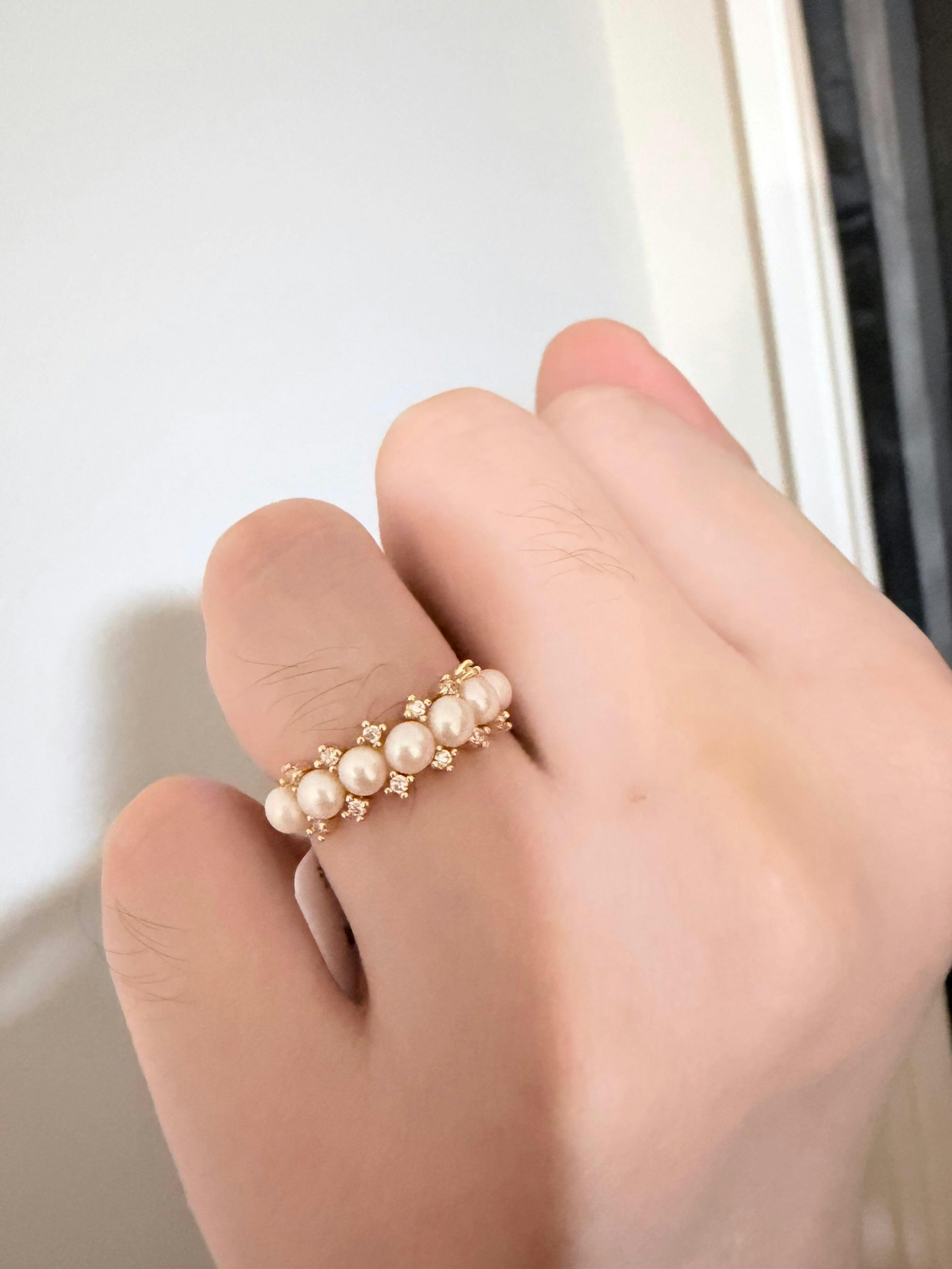 I’m obsessed with this ring! The pearls look so pretty in person and the gold details make it sparkle in the sweetest way. It’s one of those pieces that you put on and immediately feel cute. I can’t stop looking at my hand every time I wear it. The extras they sent made it even better! a jewelry care kit, a little leather pouch, a Diptyque-style scent card, and the cutest pearl hair clip!!! I wasn’t expecting all that and it honestly made my whole day. Such a sweet surprise and I love everything.🤣🎉